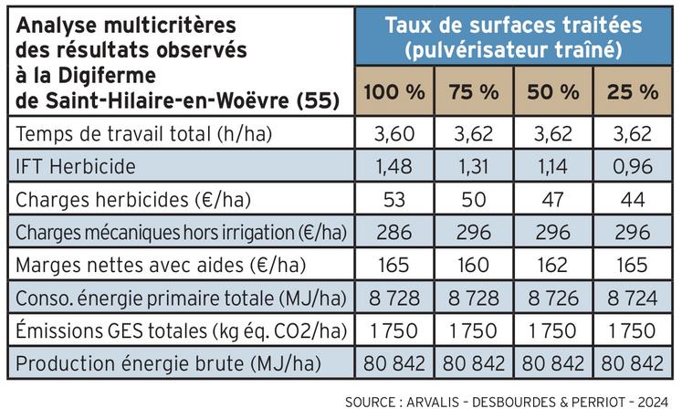 Une analyse multicritère montre une légère augmentation du temps de travail, mais une réduction de l’IFT herbicide jusqu’à 35 % pour une marge nette équivalente à un traitement en plein dès 25 % ou moins de surface traitée. « Il y a un énorme potentiel. On est sur des économies de produit de l’ordre de 80 à 99 % ! », relève Caroline Desbourdes, spécialiste de l’agriculture de précision chez Arvalis, qui rappelle toutefois que cette technologie ne concerne que des applications de rattrapage.