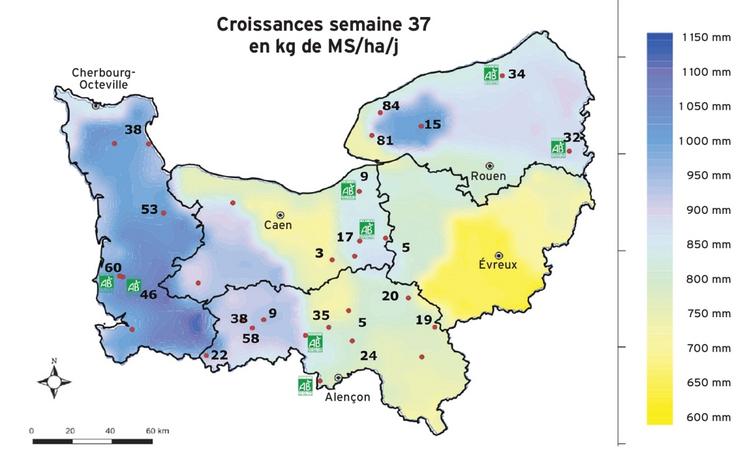La croissance de l'herbe s'est élevée à 31 kg de MS/ha/j la semaine passée en Normandie.