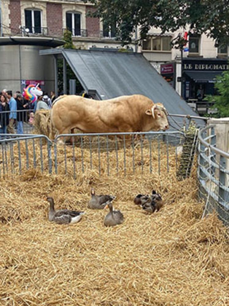 Quelle aubaine pour les Jeunes agriculteurs de Seine-Maritime (JA 76) que la très attendue Fête du ventre à Rouen ! Installé en plein cœur de la ville, il était impossible de rater le stand de dégustation de produits 100 % locaux qu'ils présentaient. D'autant que la présence d'un taureau située juste à côté attirait tous les regards. Habitué des concours, ce bel animal de la Ferme des Trois Portes de Luneray était accompagné de sa femelle et d'animaux de basses-cours : oies, canards…