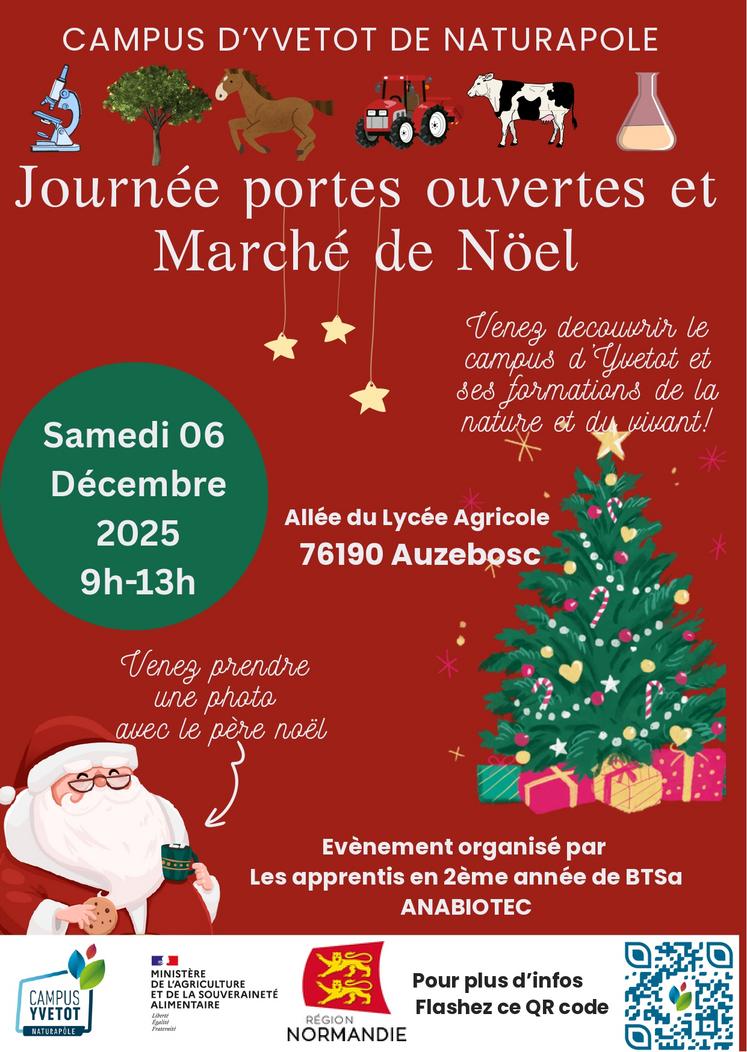 Dans le cadre d'un Pic (projet d'initiative et de communication), les BTSa Anabiotec, en 2e année au CFA Naturapôle d'Yvetot, organisent un marché de Noël qui se déroulera dans le cadre plus vaste d'une journée portes ouvertes du campus à destination des BTS, le samedi 6 décembre.