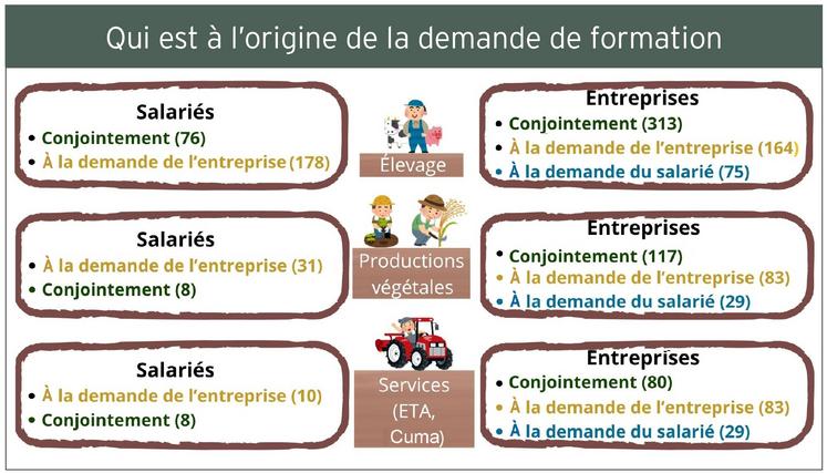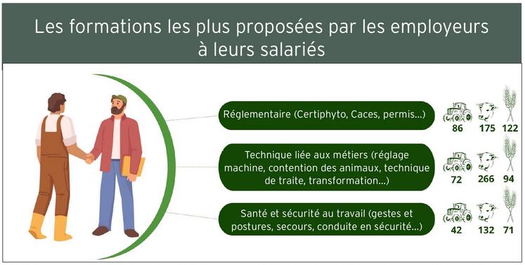 Heureusement, quelques entreprises se différencient avec des pratiques exemplaires et une régularité dans la formation de leurs salariés. On note ainsi, en élevage, par exemple, 20 employeurs qui proposent une formation chaque année et 18 en production végétale.