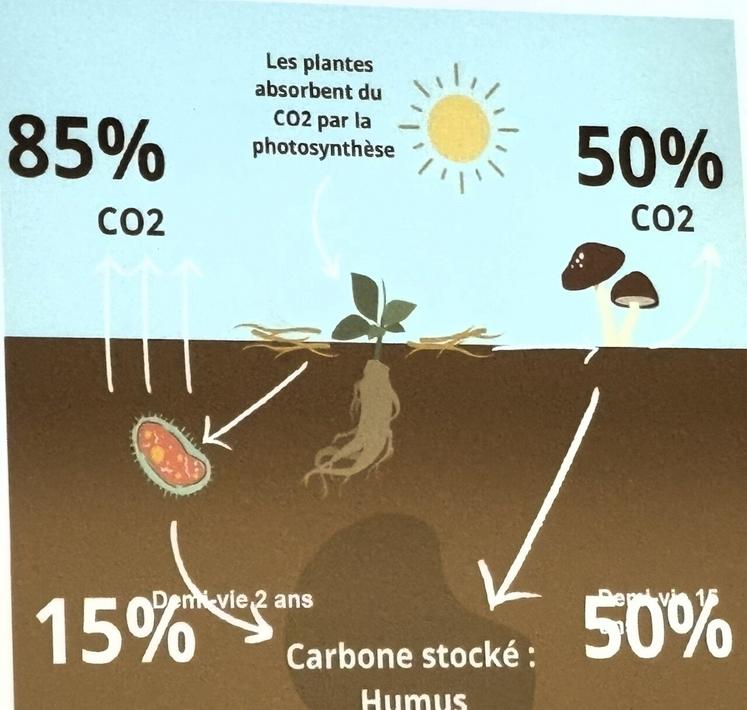Pour la vitalité des sols cultivés, un bon compromis entre champignons et bactéries est nécessaire. Un équilibre est essentiel pour la robustesse des sols car ces deux grandes familles ont des comportements différents : les bactéries ont un métabolisme très actif et rapide. À partir de 100 molécules de carbone, elles en respirent 85 % sous forme de gaz carbonique et en stockent 15 % dans le sol. La respiration des champignons est différente : à partir des 100 molécules de carbone, les champignons en respirent 50 et en stockent 50.