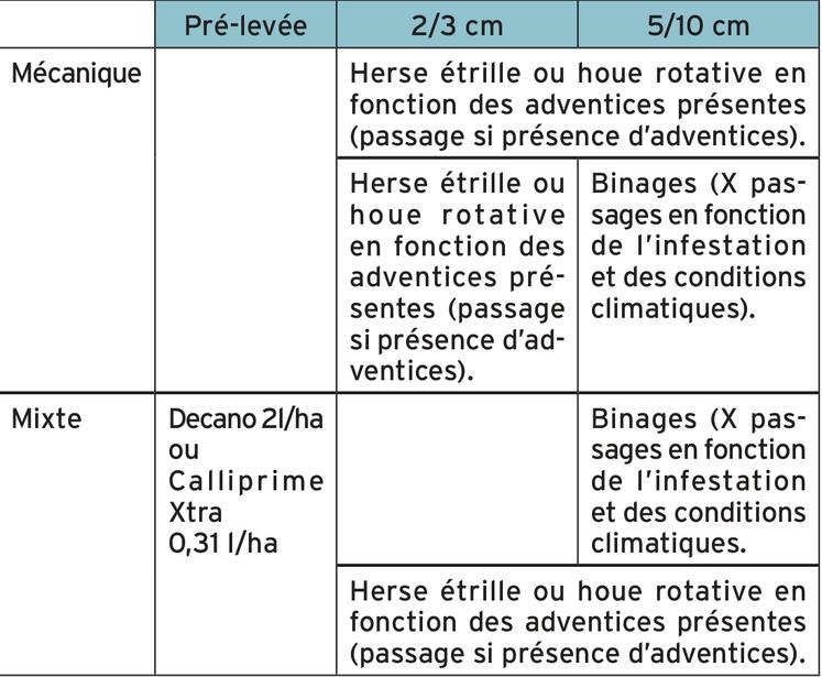 Le désherbage de prélevée a montré une efficacité variable en fonction de la période de semis, plutôt décevante pour les derniers semis en lien avec les conditions séchantes observées. Mais le retour de la pluviométrie depuis quelques jours, associé à une augmentation des températures dans quelques jours, sont favorables à la croissance des linières et des adventices. Un désherbage de rattrapage en post-levée est donc nécessaire dans la majorité des situations, avec un lin actuellement entre les stades 3 et 5 cm en moyenne. Il convient toutefois d’adapter sa stratégie de protection aux parcelles avec des défauts de structure du sol observés, notamment sur des semis précoces avec un sol encore humide en profondeur, et sur les derniers semis effectués en conditions plus sèches, qui ont pu provoquer des levées échelonnées.
