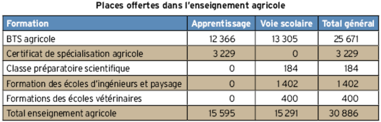 L’enseignement agricole propose plus de 150 formations sur Parcoursup allant du baccalauréat au diplôme d’ingénieur agronome ou vétérinaire. Il couvre plus de 200 métiers, et offre aux diplômés une insertion rapide et durable sur le marché du travail.