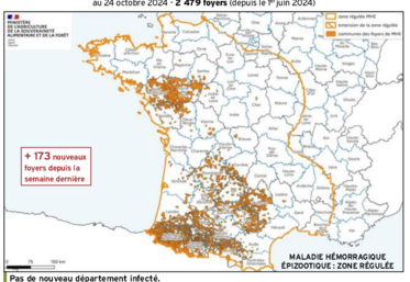 La situation concernant la MHE (maladie hémorragique épizootique) n'évolue pas au 24 octobre. Pour ce…