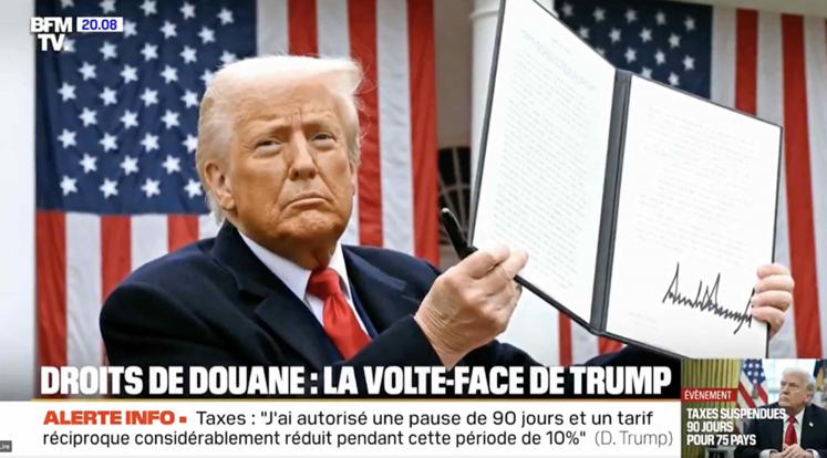 La décision européenne suit celle du président américain Donald Trump qui avait quelques heures plus tôt indiqué faire « une pause de 90 jours » dans l’application de droits de douane supplémentaires, à l’exception de la Chine. En effet, le bras de fer se poursuit entre les deux pays, Washington ayant imposé un taux de 125 % aux produits chinois, après que Pékin avait a annoncé le 9 avril, des droits de douane supplémentaires de 50 % contre tous les produits américains arrivant dans le pays, portant le total des taxes chinoises contre le Made in America à 84 %. Selon la directrice générale de l'Organisation mondiale du commerce (OMC), Ngozi Okonjo-Iweala, cette guerre commerciale pourrait réduire "jusqu'à 80 %" les échanges de marchandises entre la Chine et les États-Unis et effacer " près de 7 %" du PIB mondial sur le long terme.